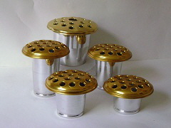 Unique style lid which holds more flowers. We have various sizes of our vases available for use in memorial stones. Our vases are weighted or un-weighted, with silver or gold lids. All of our lids are interchangeable.